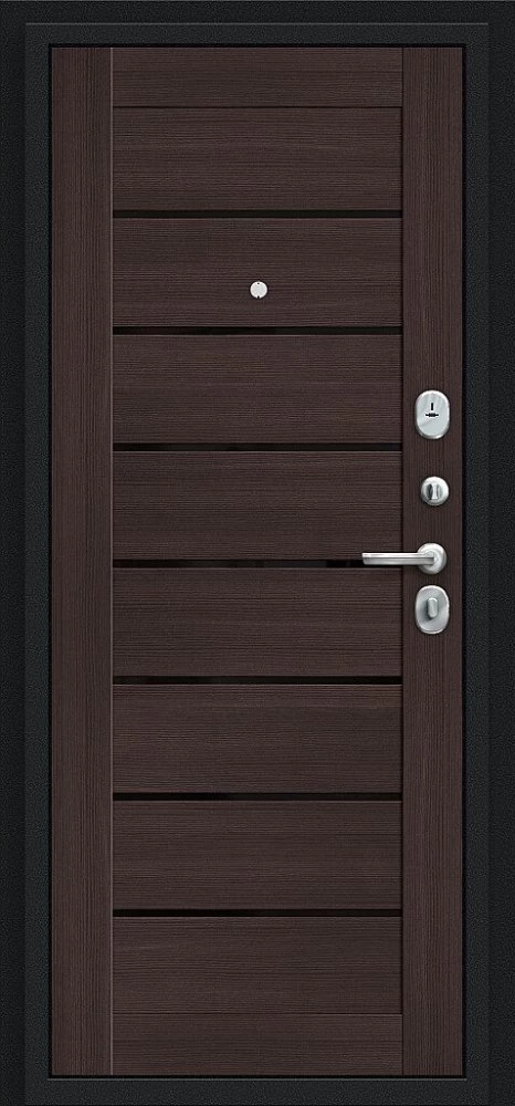 Надежная входная Дверь Браво Техно Букле черное/Wenge Veralinga премиум класса по цене 31 133 руб. Большая толщина стали защитит от проникновения в ваш дом, квартиру или коттедж. Используется очень качественная фурнитура: замки, цилиндры, ручки, защелки. Покрытие и отделка двери изготовлено под внимательным контролем производителя. Дверь имеет долгий срок службы и гарантию.
