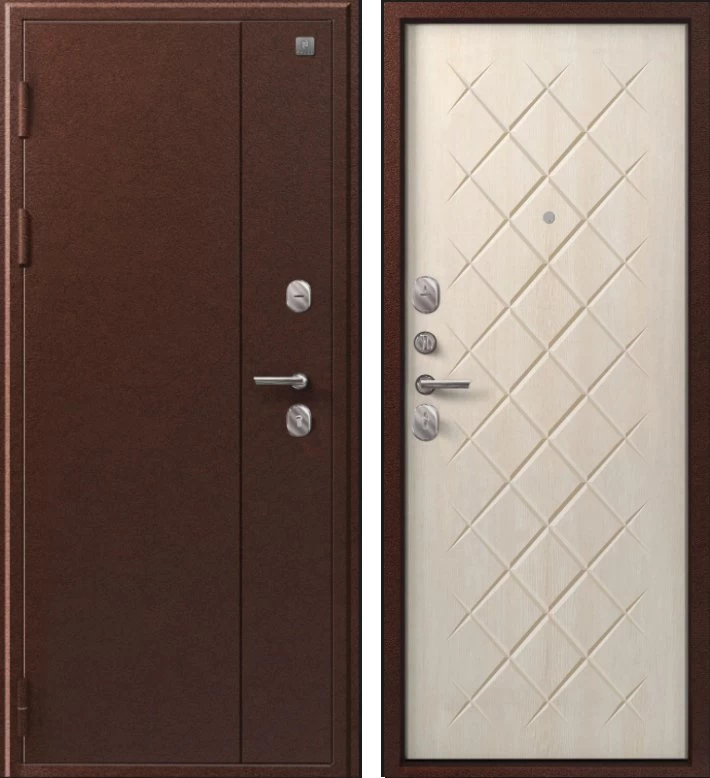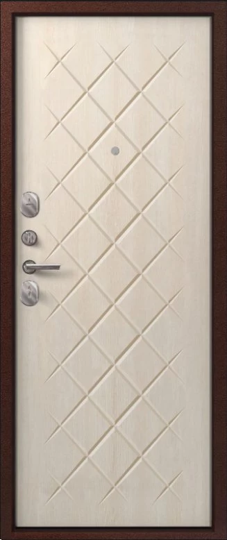 Надежная входная Дверь V-02 медь антик - седой дуб премиум класса по цене 36 633 руб. Большая толщина стали защитит от проникновения в ваш дом, квартиру или коттедж. Используется очень качественная фурнитура: замки, цилиндры, ручки, защелки. Покрытие и отделка двери изготовлено под внимательным контролем производителя. Дверь имеет долгий срок службы и гарантию.