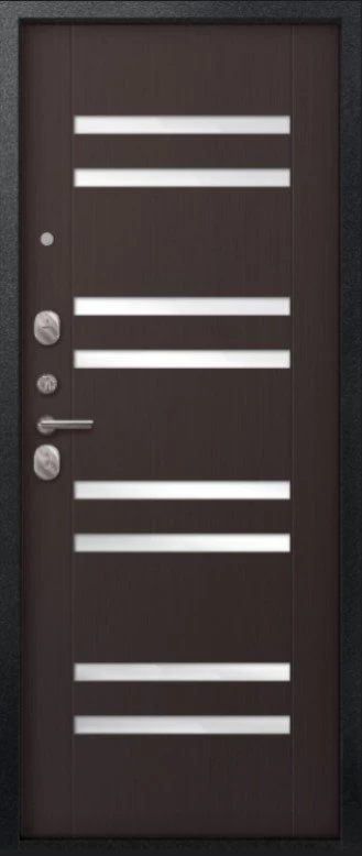 Надежная входная Дверь V-07 Черный муар - Темная лиственница премиум класса по цене 41 783 руб. Большая толщина стали защитит от проникновения в ваш дом, квартиру или коттедж. Используется очень качественная фурнитура: замки, цилиндры, ручки, защелки. Покрытие и отделка двери изготовлено под внимательным контролем производителя. Дверь имеет долгий срок службы и гарантию.